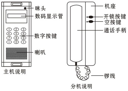 數碼式N+1系統呼叫說明:主機面板有0- 9的數字按鍵,來訪者輸入三位或四位的房號(例如0203,按順序按健盤的0,2,0,3按鍵即可,按2、0. 3也可以呼叫),如按錯,可按“*”字鍵取消,重新輸入正確的房號,呼叫成功時對應分機會發出音樂鈴聲,以提示用戶有訪客到。用戶摘機即可與訪客互相通話,住戶確認訪客身份后,可按開鎖鍵,遙控開戶樓下大門電鎖。